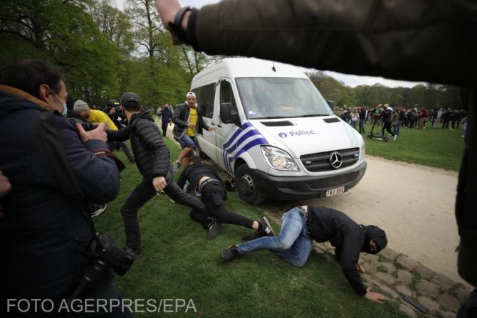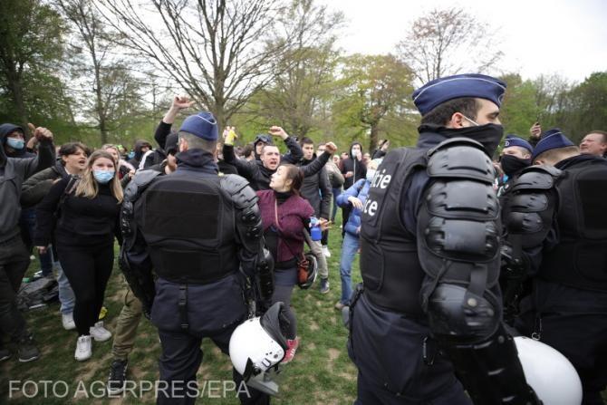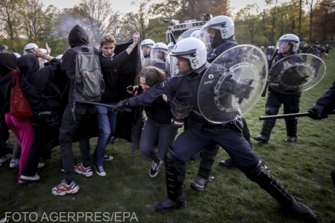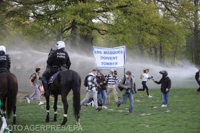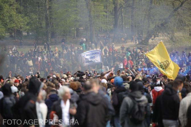 Galerie foto: Protest anti-restricții, înăbușit de oamenii legii, la Bruxelles