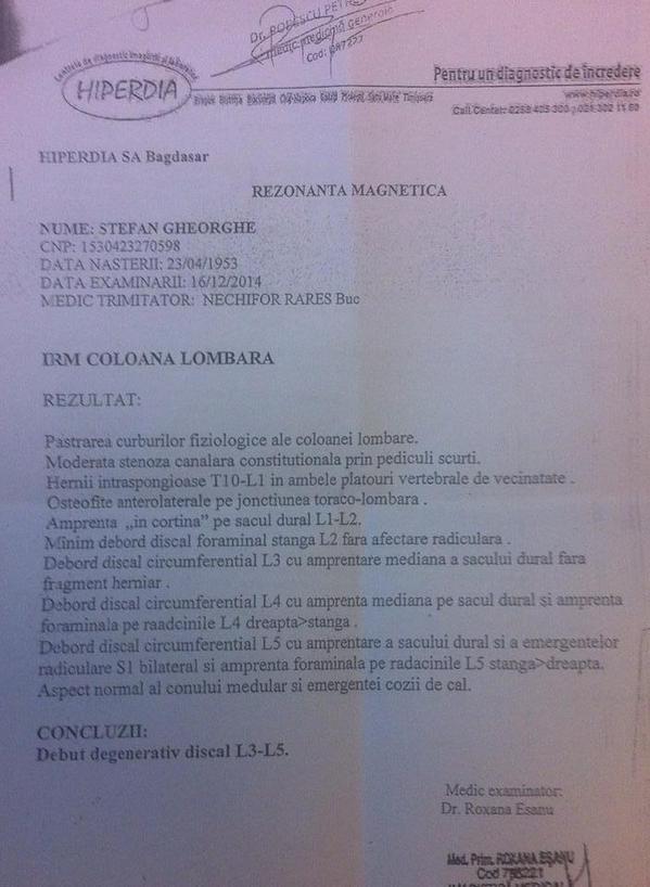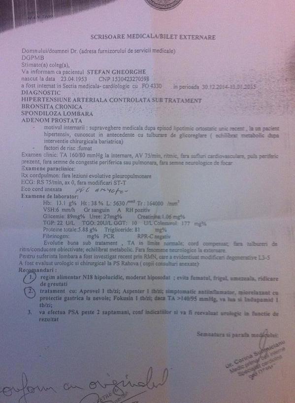 Gheorghe Ştefan este suspect de cancer. Vezi fișele medicale