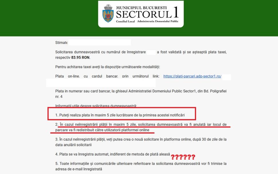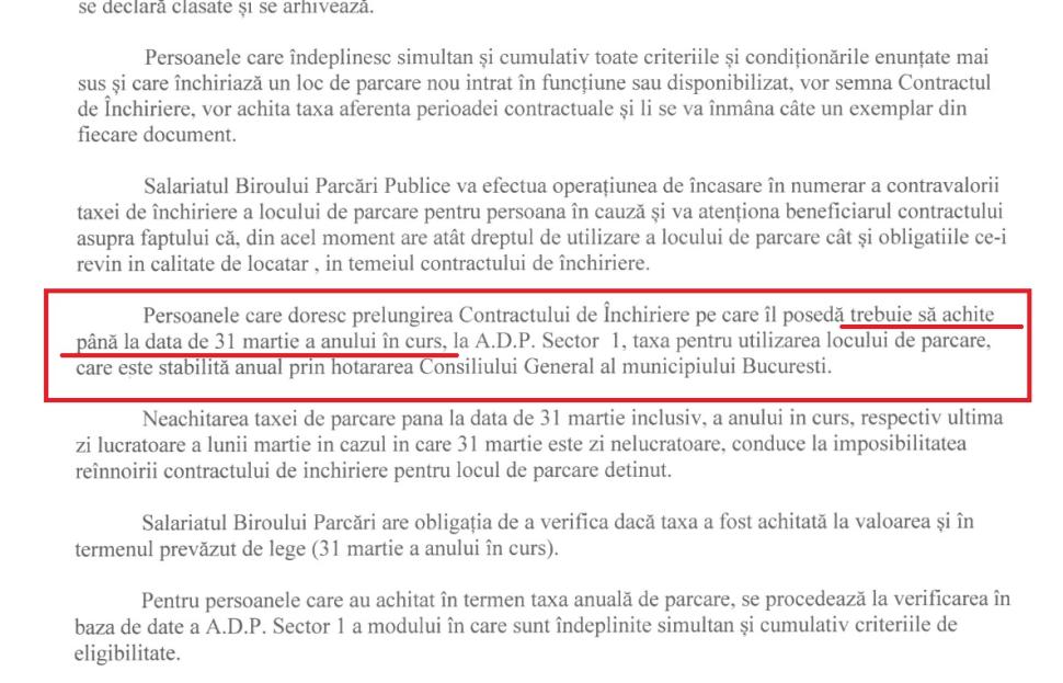 Haos la contractele pentru parcări, în Sectorul 1. Plata taxei pentru 2021 se face după un regulament care nu este în vigoare și are prevederi aberante