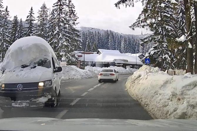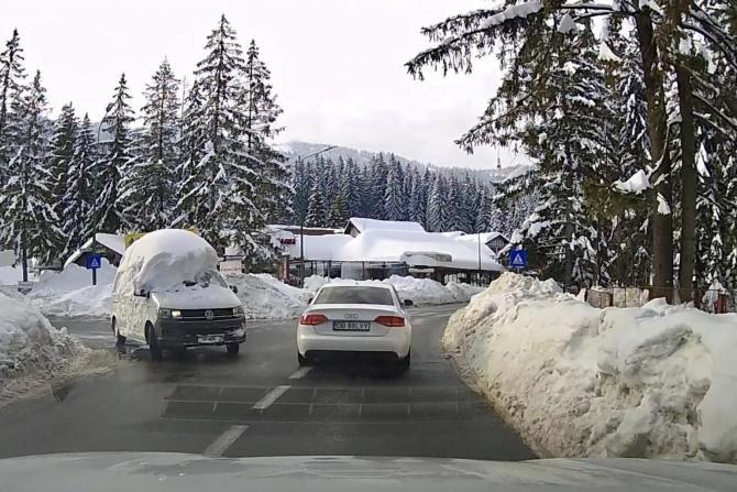 Imagini IREALE din Poiana Brașov. Cum a plecat un șofer la drum - FOTO