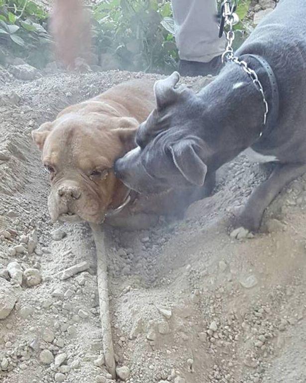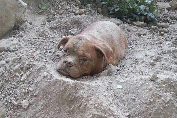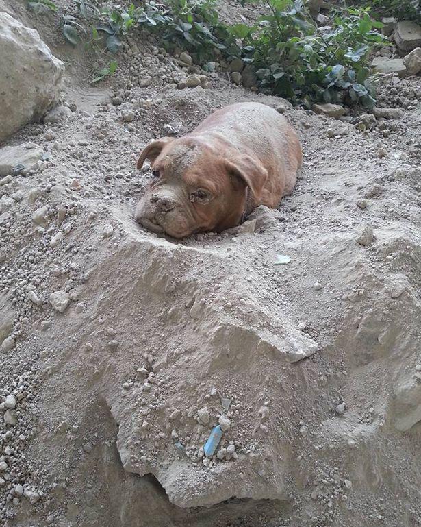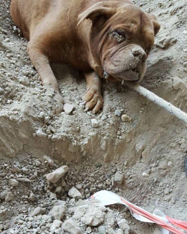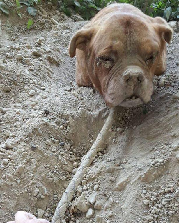 Imagini tragice! Câine, îngropat de la gât în jos, salvat la timp