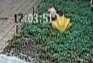 Imagini tragice! O fetiță se aruncă de la etajul patru cu o umbrelă