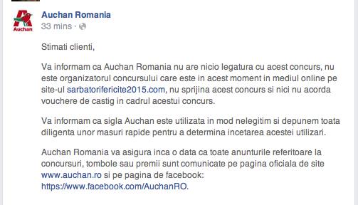 Înșelăciune în numele marilor hipermarketuri de Sărbători. Anunțul Auchan