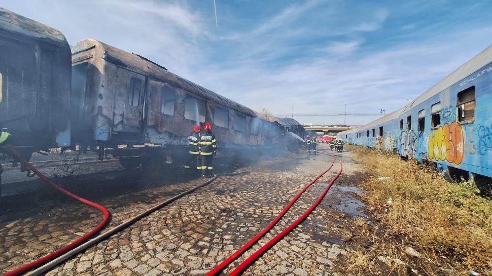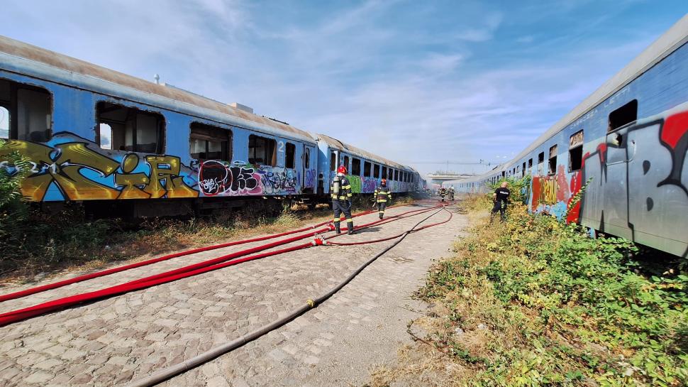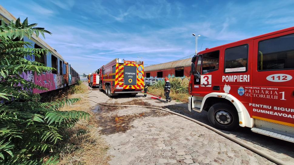 Incendiu în București. Două vagoane aflate între Podul Grant şi Podul Basarab au luat foc - FOTO
