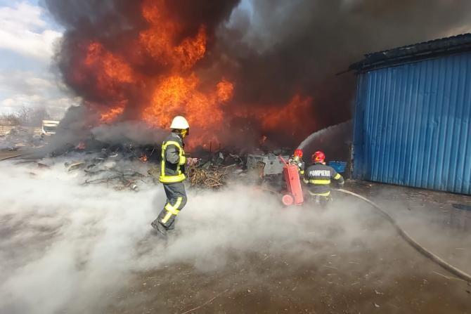 Incendiu puternic la Arad. Pompierii acționează cu forțe sporite