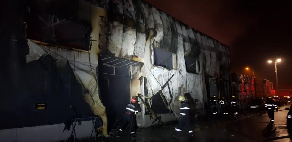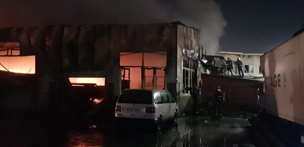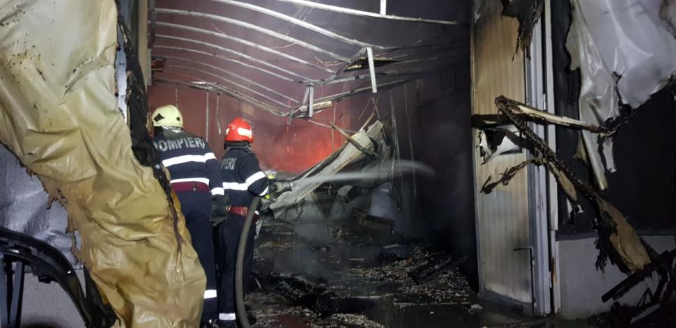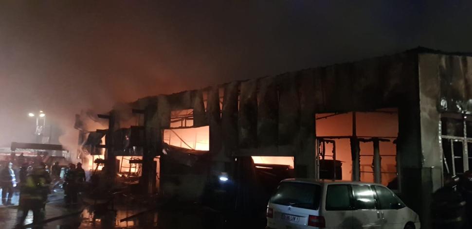 Incendiu puternic la un depozit din Șoseaua Fundeni. Ard autoturisme. Risc de prăbușire a halei - UPDATE