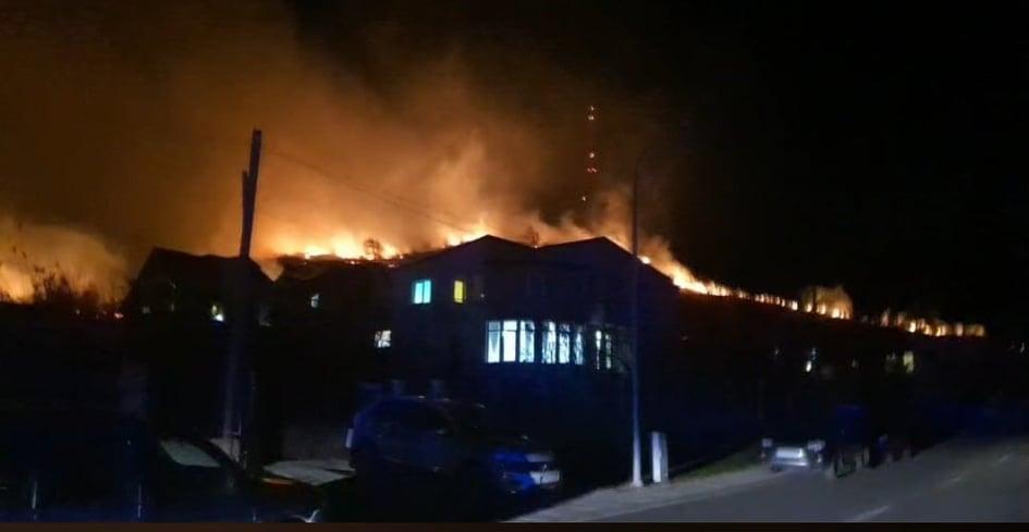 Incendiu URIAȘ pe Muntele Pietricica. Focul se apropie de case - VIDEO