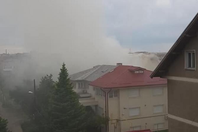 Incendiu violent într-un bloc din Popești Leordeni. Pompierii NU pot interveni cu autoscările - FOTO/VIDEO
