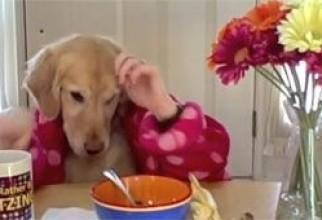 Incredibil. Câinele care ia micul dejun la fel ca un om-VIDEO