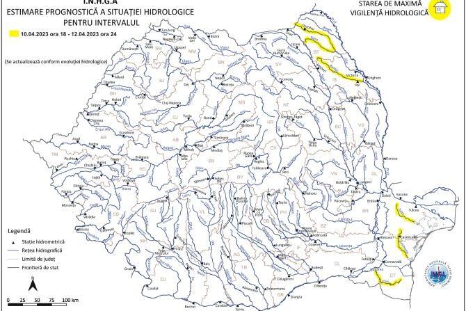 INHGA, avertizare Cod Galben de viituri și inundații. Zonele vizate