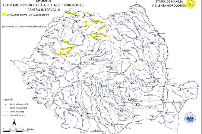 INHGA avertizează: Cod Galben de viituri și inundaţii. Zonele vizate