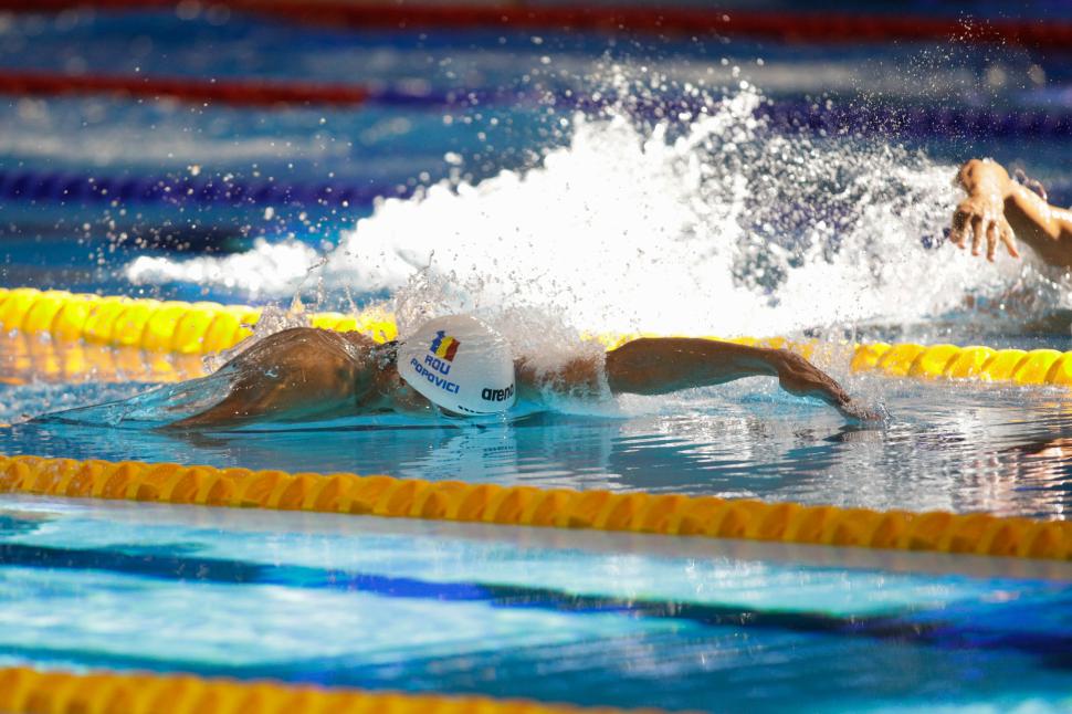 David Popovici, medaliat cu aur la 50 m liber, la Campionatul European de înot pentru juniori de la Otopeni - Foto