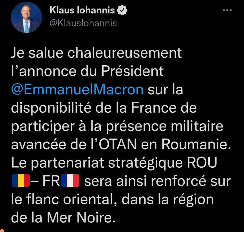 Klaus Iohannis salută anunțul lui Emmanuel Macron despre prezența militară sporită în România
