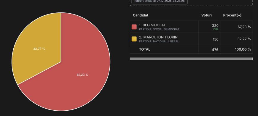 Nicolae Beg, din partea PSD, este noul primar din Marga, Caraș-Severin, cu 320 de voturi, respectiv 67,23% din voturi. A avut un singur contracandidat, din partea PNL, care a obținut 156 de voturi - 32,77%.