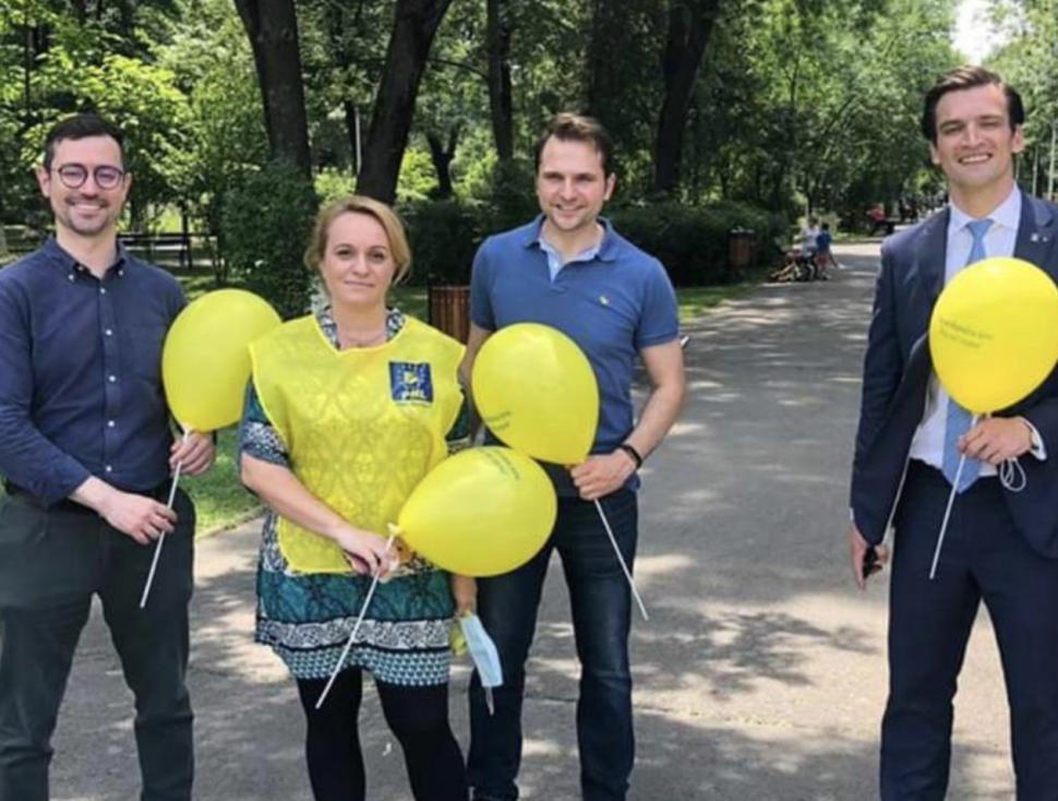 Gestul LIBERALILOR: Baloane de la partid, umflate cu gura, dăruite copiilor și bunicilor