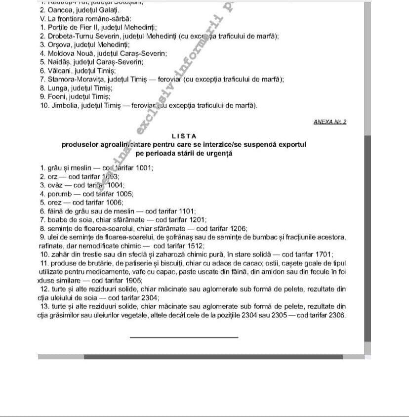 LISTA completă a produselor agroalimentare care nu pot fi exportate