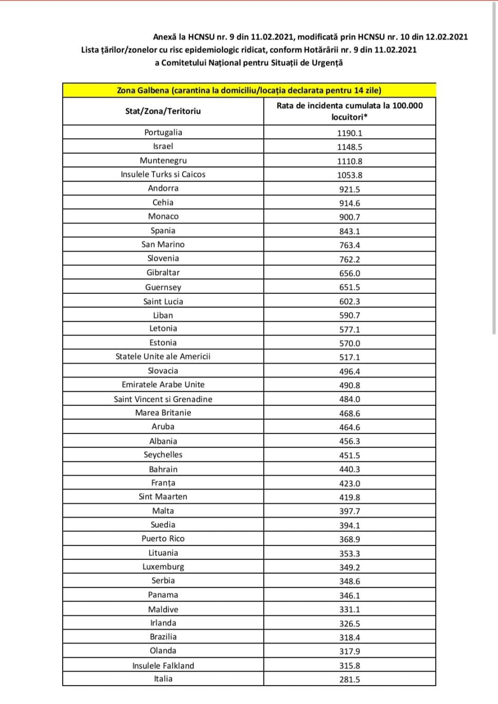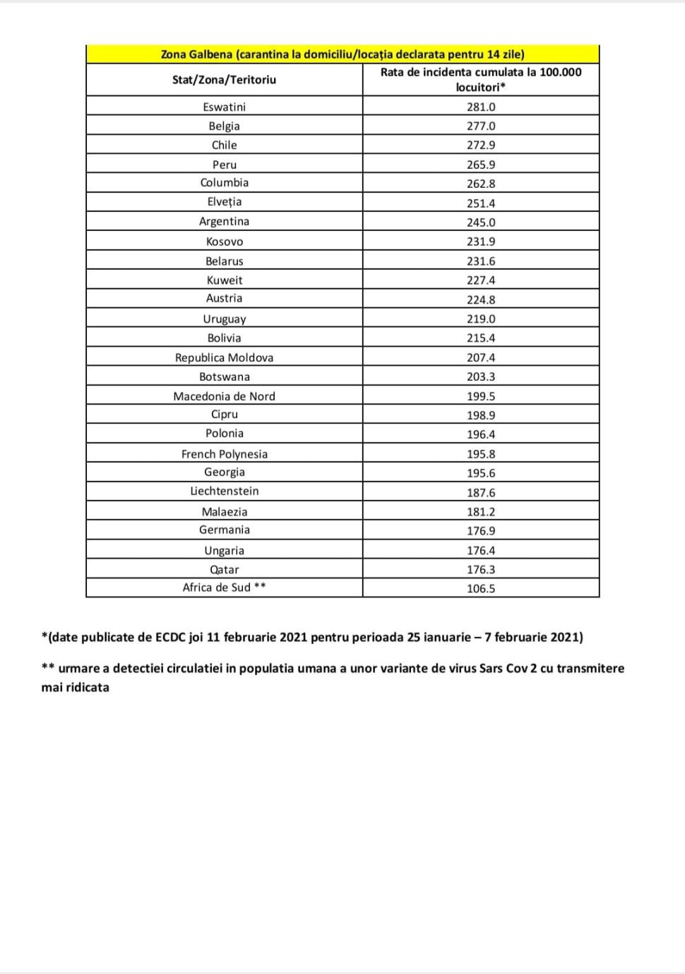 Listă state din zona galbenă, actualizată 15 februarie 2021