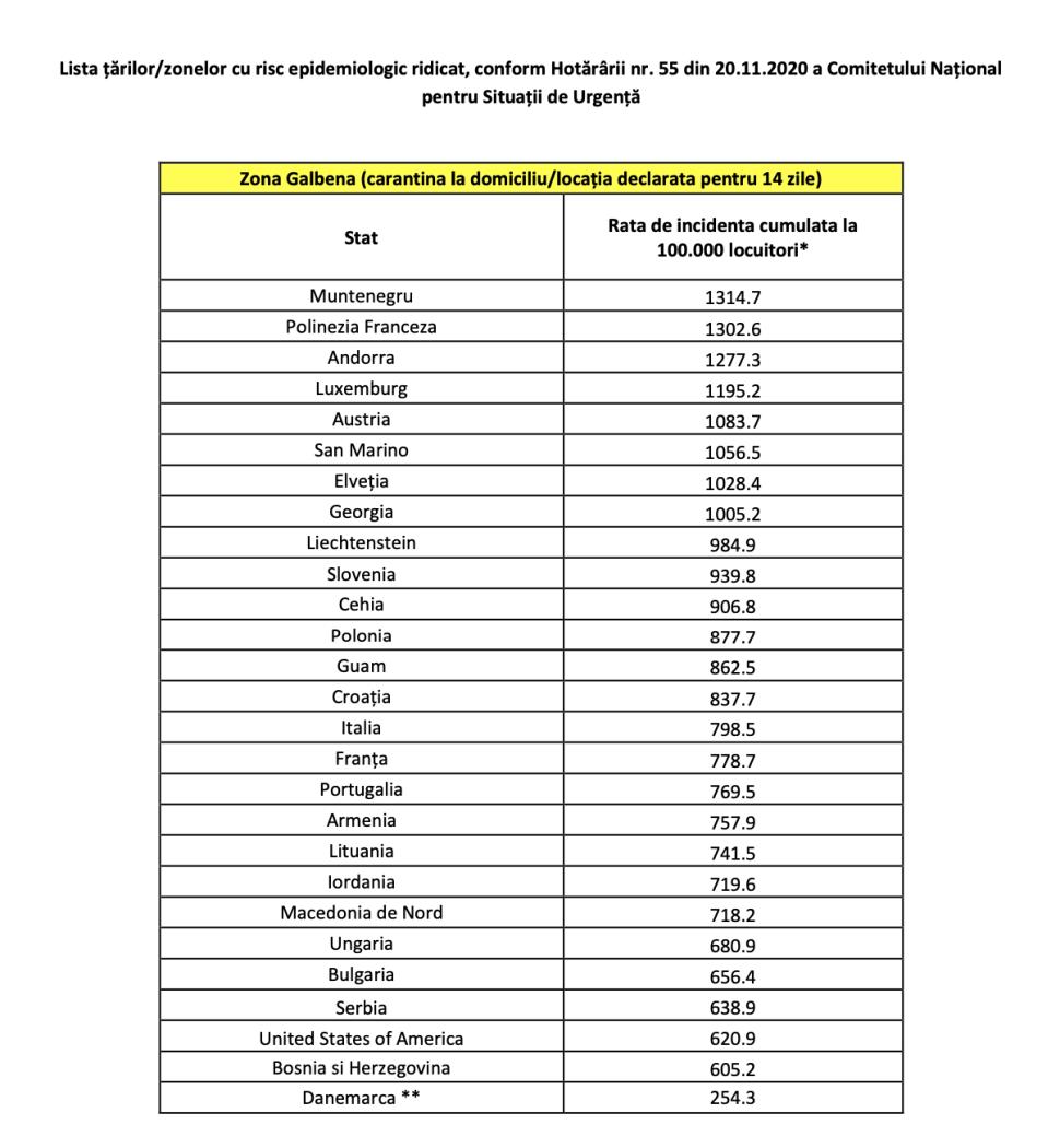 Lista țărilor din ZONA GALBENĂ, actualizare 20 noiembrie 2020. CARANTINĂ pentru 14 zile dacă revii din aceste state