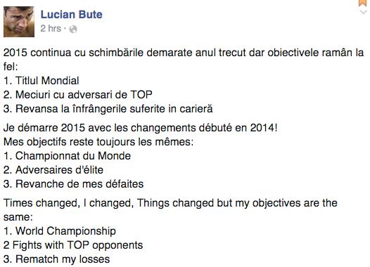 Lucian Bute, OBIECTIVE pentru 2015: Titlul mondial, meciuri cu adversari de top și revanșa în înfrângeri