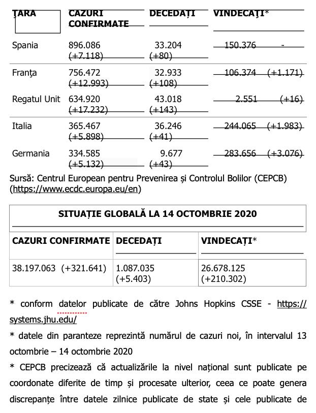 MAI bilanț COVID-19. Sunt cifrele ZILEI. RECORD decese în ultimele 24 de ore. Date 15 octombrie 2020