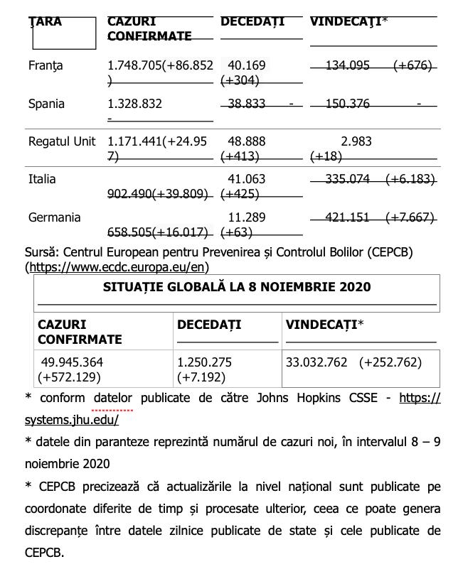 MAI - bilanț COVID-19. Date privind infectările din ultimele 24 de ore - 9 noiembrie 2020