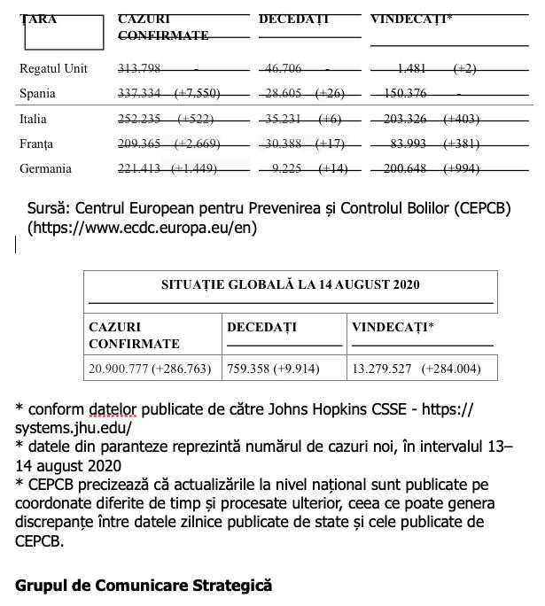 MAI - bilanț COVID-19. Situația infecțiilor din ultimele 24 de ore - Date 15 august 2020