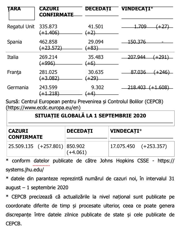 MAI - bilanț COVID-19. Un nou val de infectări în ultimele 24 de ore. Cifrele zilei - 2 septembrie 2020