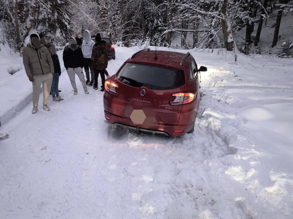 Mai mulţi turişti au rămas blocaţi pe un drum forestier înzăpezit din Predeal. Au încercat să ajungă la Azuga ocolind DN1