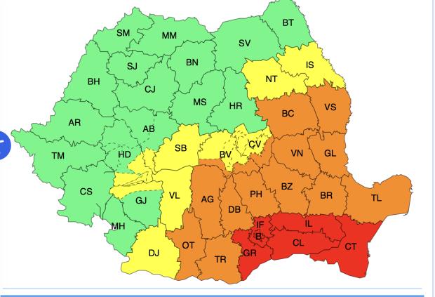 Zone afectate: județele Constanța, Călărași, Ialomița, Giurgiu, Ilfov și în municipiul București