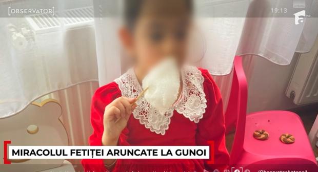 Sursa foto - Captură Observator - Maria, fetița care a fost aruncată de medic la gunoi, are 6 ani