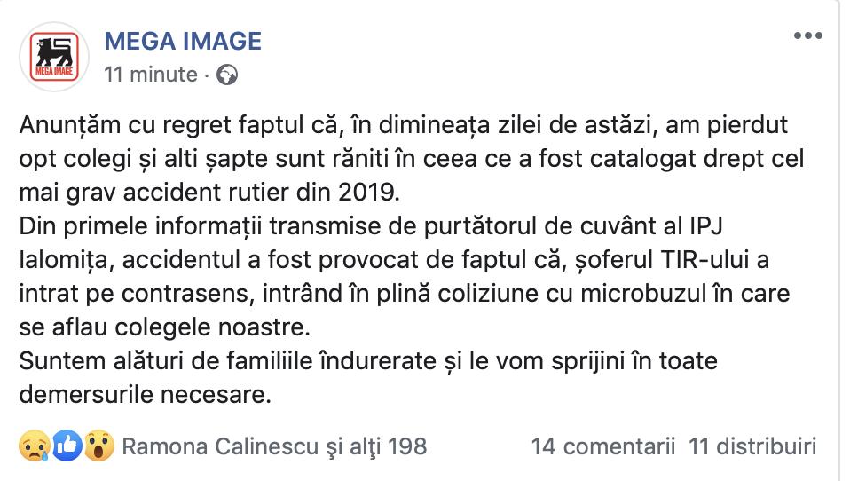 MEGA IMAGE, după accidentul din Ialomița: Am pierdut OPT COLEGI