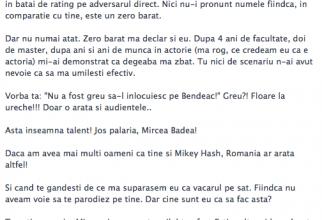 Mihai Bendeac și Mircea Badea se răfuiesc pe Facebook