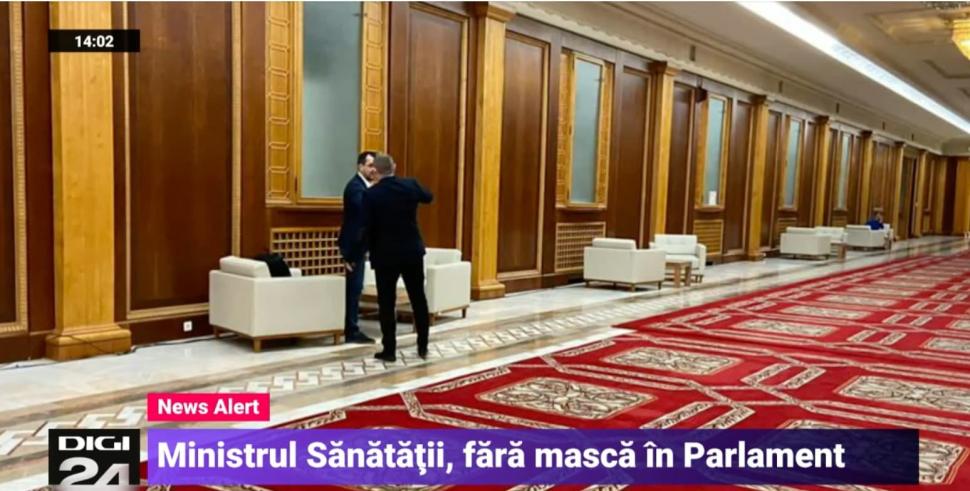 Ministrul Sănătății, Vlad Voiculescu, prins fără mască pe holurile Parlamentului