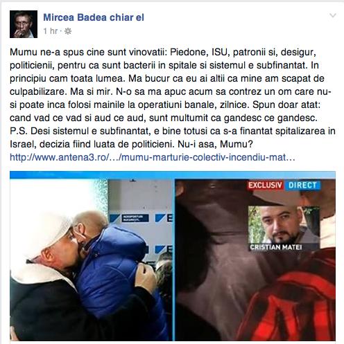 MIRCEA BADEA, iritat de un jurnalist rănit în Colectiv. Mesaj tăios