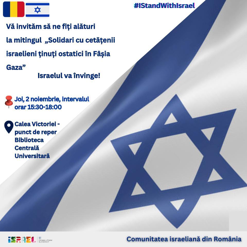 Miting de solidaritate cu cetățenii israelieni ținuți ostatici de Hamas, în București