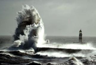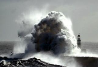 Momentele în care un val uriaș lovește un far. Imagini spectaculoase
