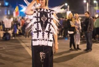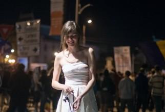 Pe o protestatară n-o mai încap hainele de sute de euro. Un sân a scăpat