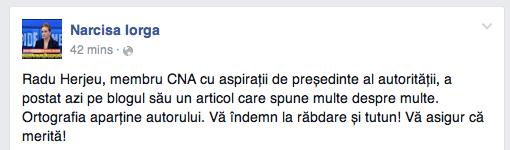Narcisa Iorga îl critică pe Radu Herjeu după un comentariu la adresa lui Traian Băsescu