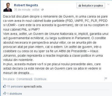Robert Negoiță (PSD) cere cooptarea PMP și PNL la guvernare