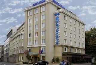 O bucată din faţada hotelului Minerva din Capitală s-a prăbuşit peste terasa unui restaurant