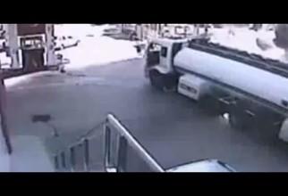 O cisternă plină cu benzină a luat foc într-o benzinărie