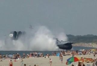 O navă de război a speriat turiștii de pe plajă - VIDEO