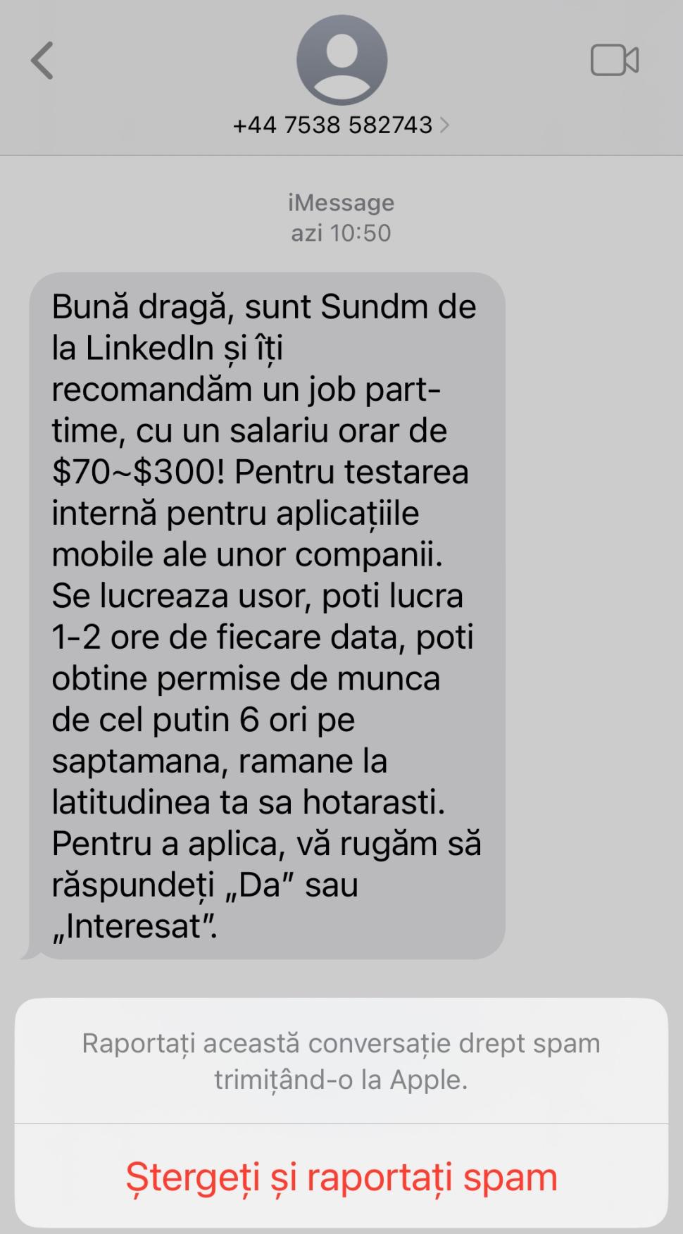 O nouă escrocherie. SMS-ul în care ți se oferă un loc de muncă bine plătit / foto