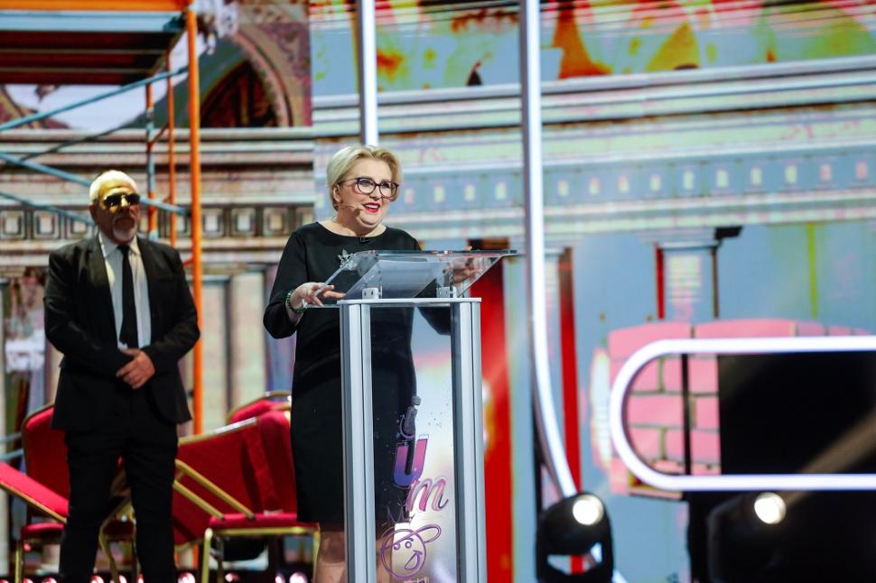 "O să fac multe pentru ţară". Viorica Dăncilă, pe scena de la iUmor: Ori astupăm gropile, ori, mai ieftin, săpăm în jurul lor, ca să nu se mai vadă