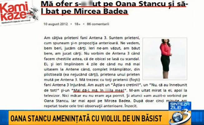 Oana Stancu, sub teroare. A fost amenințată cu violul