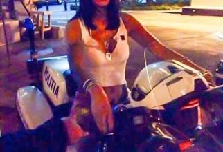 Oana Zăvoranu, ședință foto pe motocicleta Poliției Rutiere
