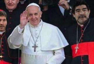 Papa Francisc, flancat de "cardinalii" Messi și Maradona, într-o imagine trucată