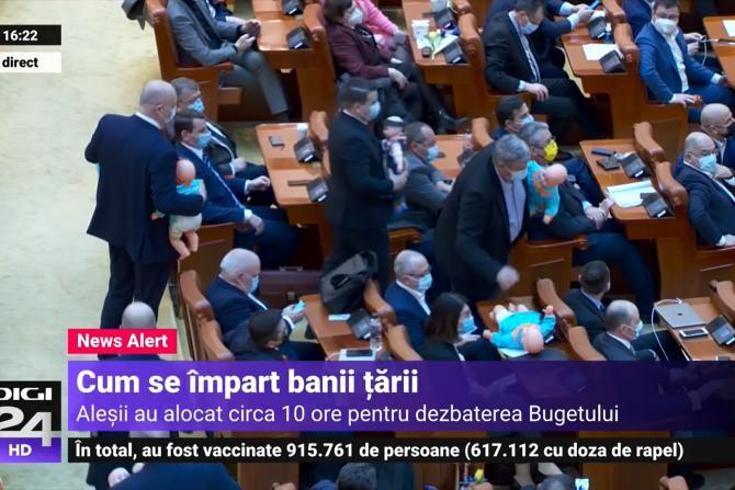 FOTO: Parlamentarii PSD au venit cu bebeluși la dezbaterea pe buget