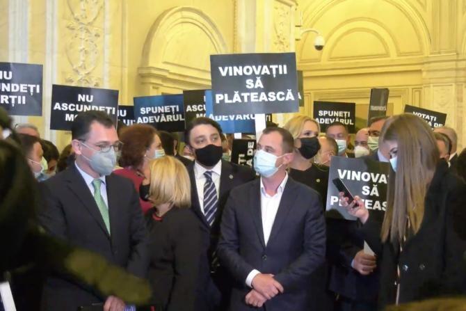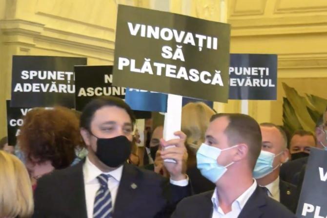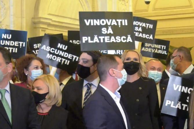 Parlamentarii PSD, protest cu pancarte în faţa biroului lui Ludovic Orban. Se cere comisie de anchetă pentru datele despre morţii de COVID-19