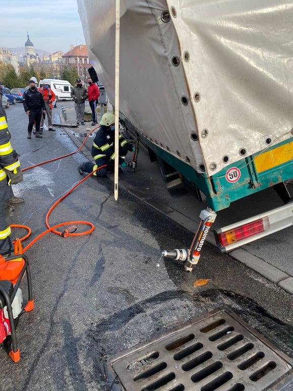 Pericol de explozie în Cluj-Napoca, după ce o ţeavă de gaze a fost ruptă de un camion - FOTO